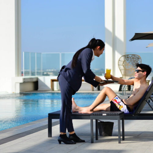 四季彩レストランは、インターナショナルエリアと和食エリアに分かれており、シチュエーションに合わせてご利用いただけます。もちろん、どちらのエリアをご利用いただいても全てのメニューをご注文可能です。ロビーラウンジやプールバーでは、ホテルクオリティのカクテルや軽食などをお楽しみいただけます。
