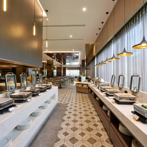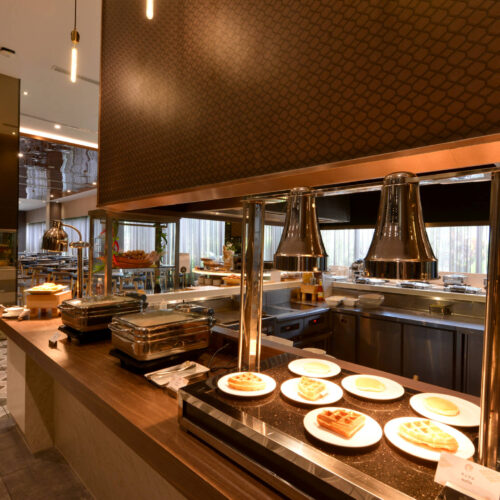 四季彩レストランは、インターナショナルエリアと和食エリアに分かれており、シチュエーションに合わせてご利用いただけます。どちらのエリアをご利用いただいても全てのメニューをご注文可能です。